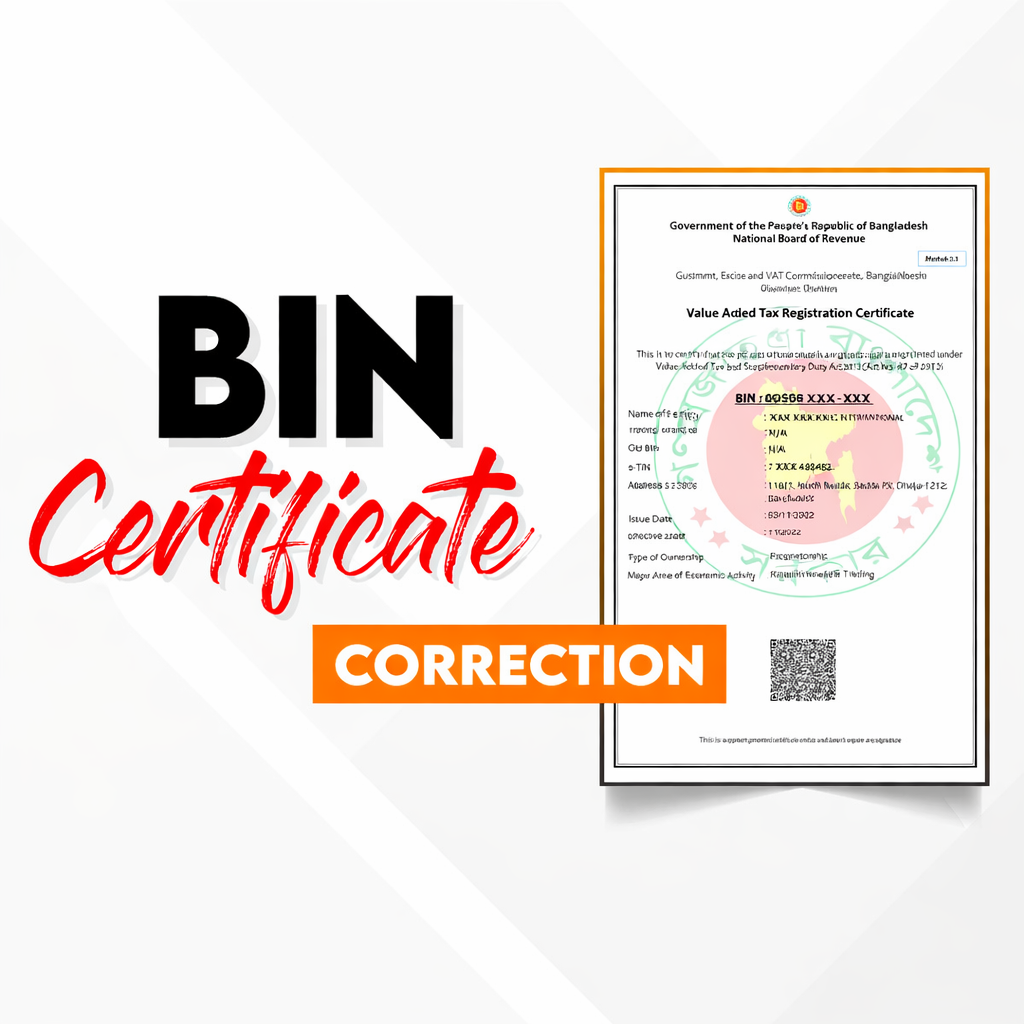 BIN Certificate Correction3,000.00৳ Select options Service Name Choose…BIN Certificate Correction BIN Certificate Correction Type Choose service name first… Delivery Timeline Choose bin certificate correction type first… . Tip: You can select multiple types. Total service price Approx. Delivery Time BIN Certificate Correction quantity Order Now Category: Business Related products Environmental Clearance Certificate 10,000.00৳ Add to cart Company Audit Report Service 20,000.00৳ Add to cart Civil Aviation Certificate and Licensing Services 90,000.00৳ Add to cart