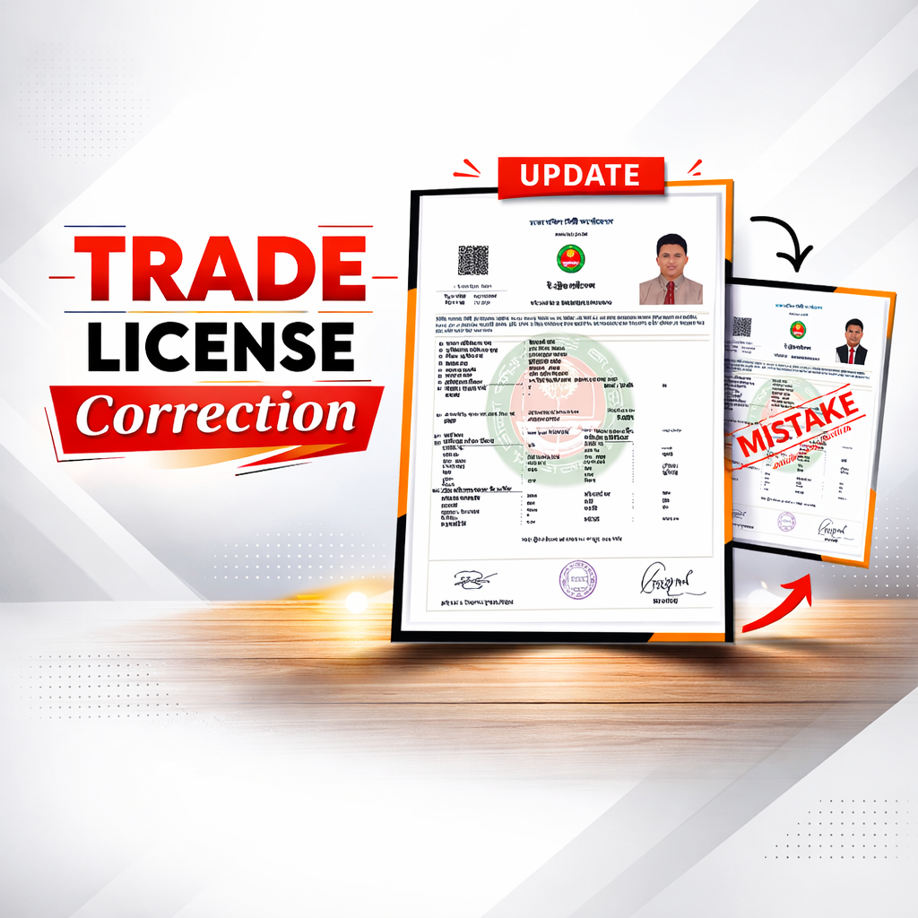 Trade License Correction3,000.00৳ Select options Service Name Choose…Trade license Correction Correction Type Choose service name first… Delivery Timeline Choose correction type first… . Tip: You can select multiple types. Total service price Approx. Delivery Time Trade License Correction quantity Order Now Category: Personal Related products Visa Permission Service 20,000.00৳ Add to cart E-Apostille Service 5,000.00৳ Add to cart Trademark Registration 5,000.00৳ Add to cart